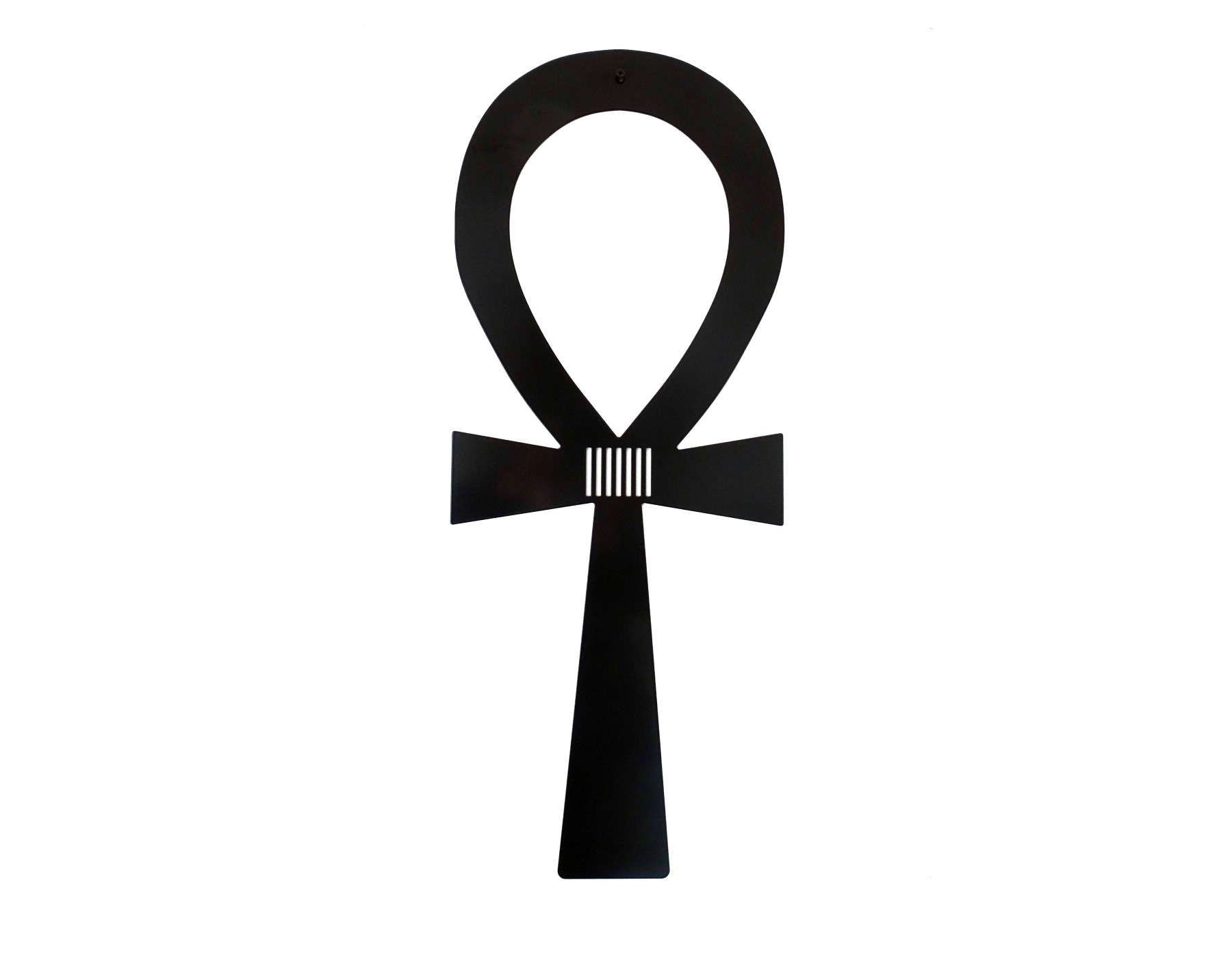 De wanddecoratie is gemaakt van 2mm staal. De ankh is 68cm lang en 28cm breed. Het staal is vervolgens gepoedercoat.