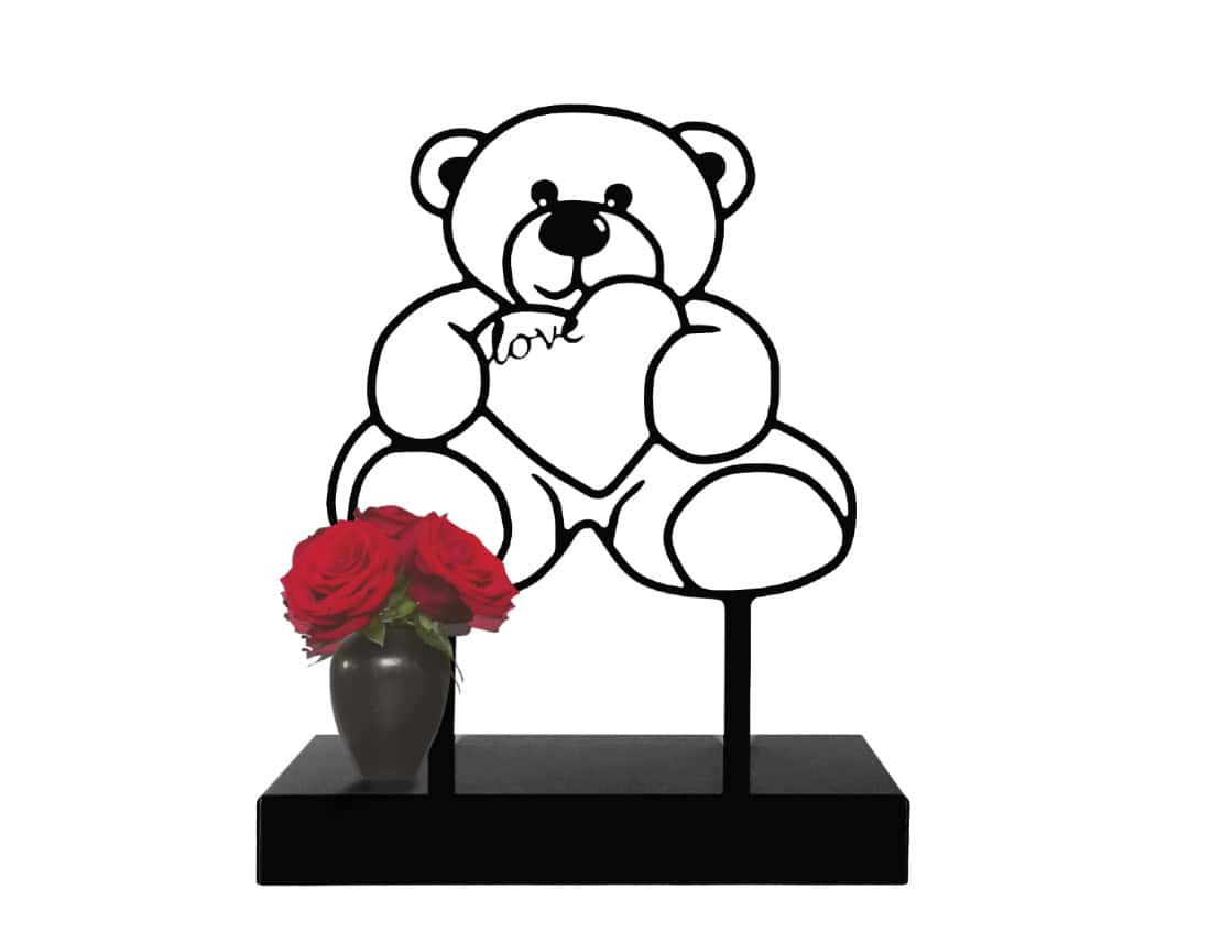 Een prachtige Beer urn. Een duurzame en kwalitatief hoogwaardige urn, gemaakt van staal. Speciaal ontworpen om uw grootste verlies op een persoonlijke manier te gedenken. Een urn die voorzien is van een haakjes en een plateau sokkel (tevens as-ruimte). Hierdoor bied deze beer urn u de mogelijkheid om diverse persoonlijke herinneringsitems toe te voegen. De letter e van LOVE is subtiel een haakje. Aan dit haakje kan bijvoorbeeld een glasbol hanger met een plukje haar. De sokkel is als het ware een stalen doos waarin u de crematie-as en andere speciale herinneringsitems in kunt bewaren. Daarnaast is op deze plateau sokkel voldoende ruimte voor onder andere een foto, kaarsje, bloemetje, knuffel etc.. Zo creëert u uw eigen persoonlijke gedenkaltaartje. Een tastbare herinnering die u troost en steun biedt en waarbij u terug kunt denken aan de mooie momenten. Kortom…een prachtig urn die gemaakt is om te gedenken.