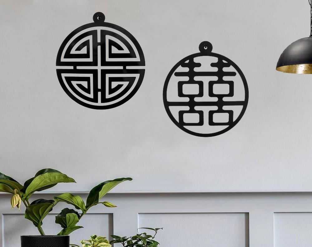 Het Shou symbool is gemaakt van 2mm staal. Het staal is vervolgens gepoedercoat* in kleur. RVS op aanvraag.