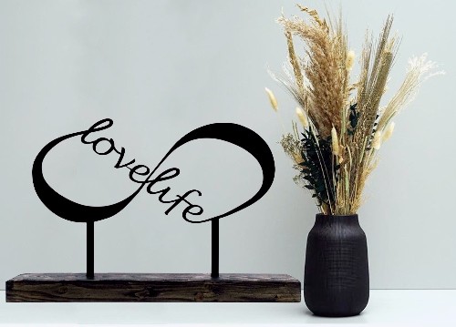 Prachtig Infinity symbool met de woorden “love life”. Om jou eraan te herinneren om van het leven te genieten. Het symbool is gemaakt van metaal en staat in een houten voet. De voet is met de hand bewerkt en op kleur gebracht. Mooie decoratie op een tafel of kastje. De houten voet is met de hand in een bijpassende kleur gebeitst. Een mooie decoratie voor onder andere voor het raam of op een tafel of kastje.